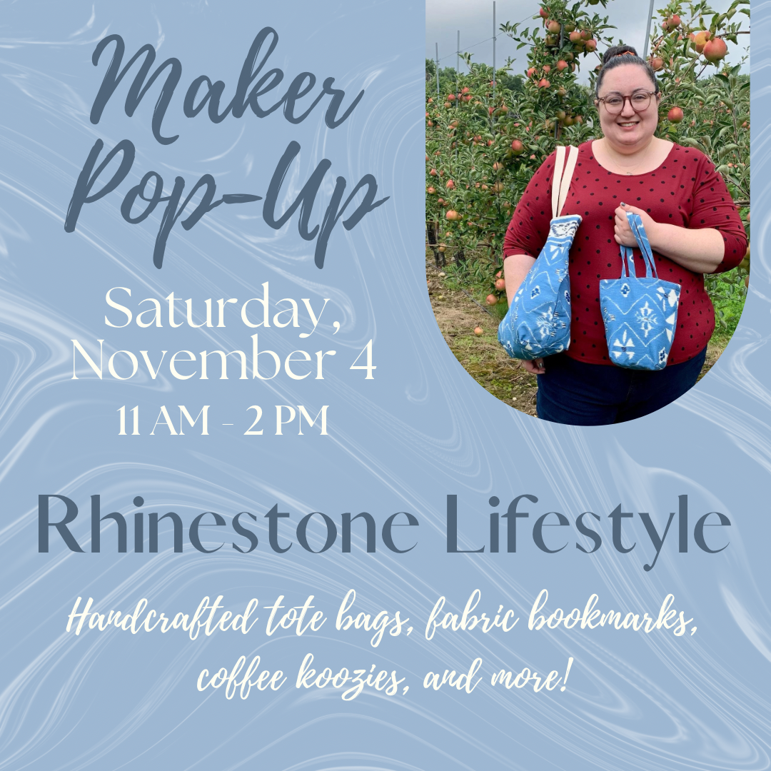 Visit local creator Rhinestone Lifestyle’s popup shop at our community table. Shop their range of bookish goods then browse for your next read!